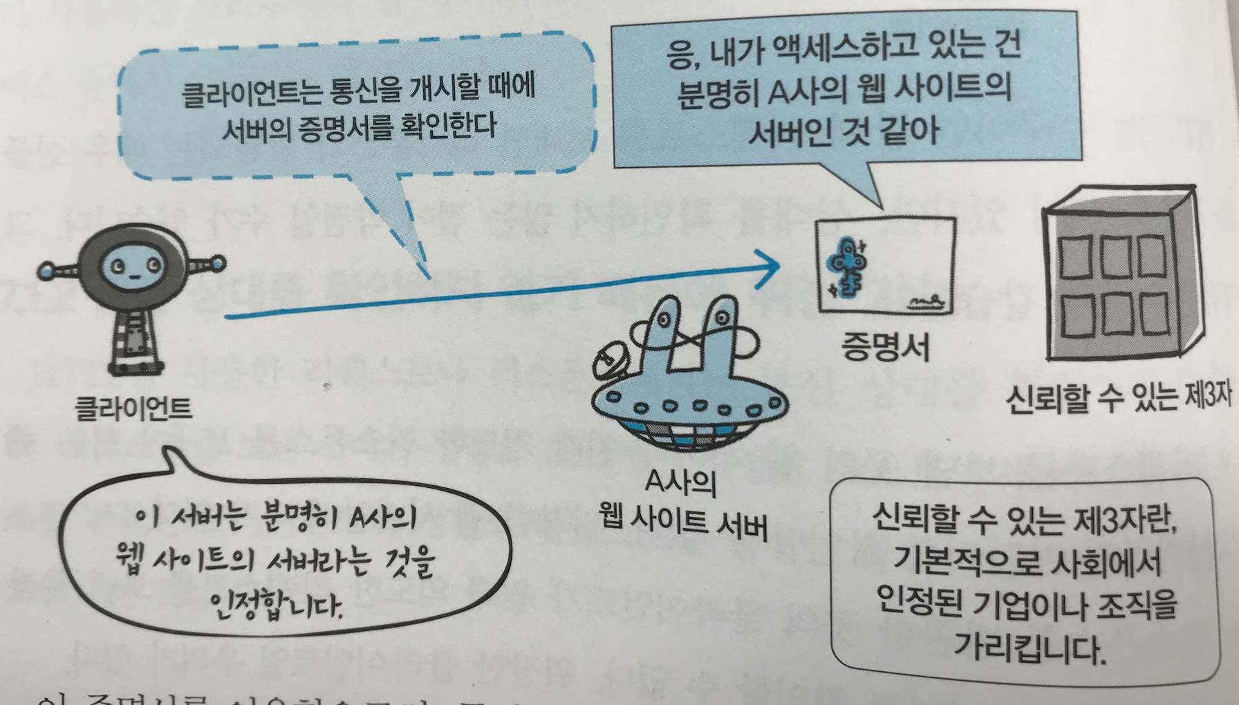 증명서는 신뢰할 수 있는 제 3자 기관에 의해 발급되는 것으로 통신하는 상대인 클라이언트 혹은 서버가 실재하는 사실을 증명받을 수 있다.